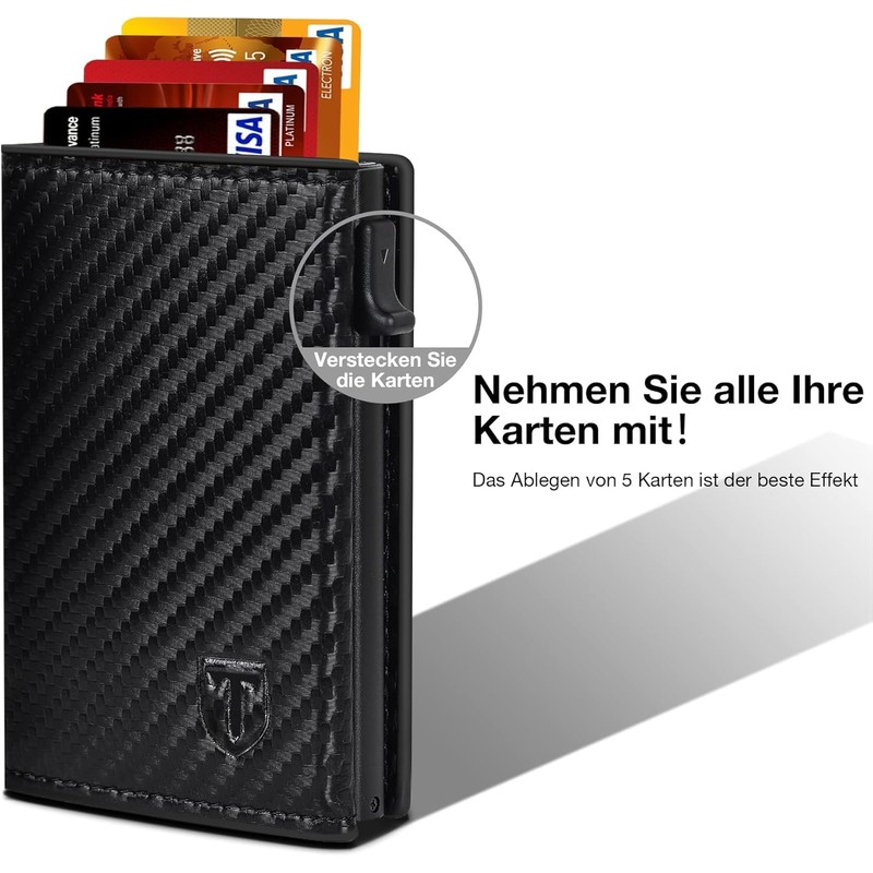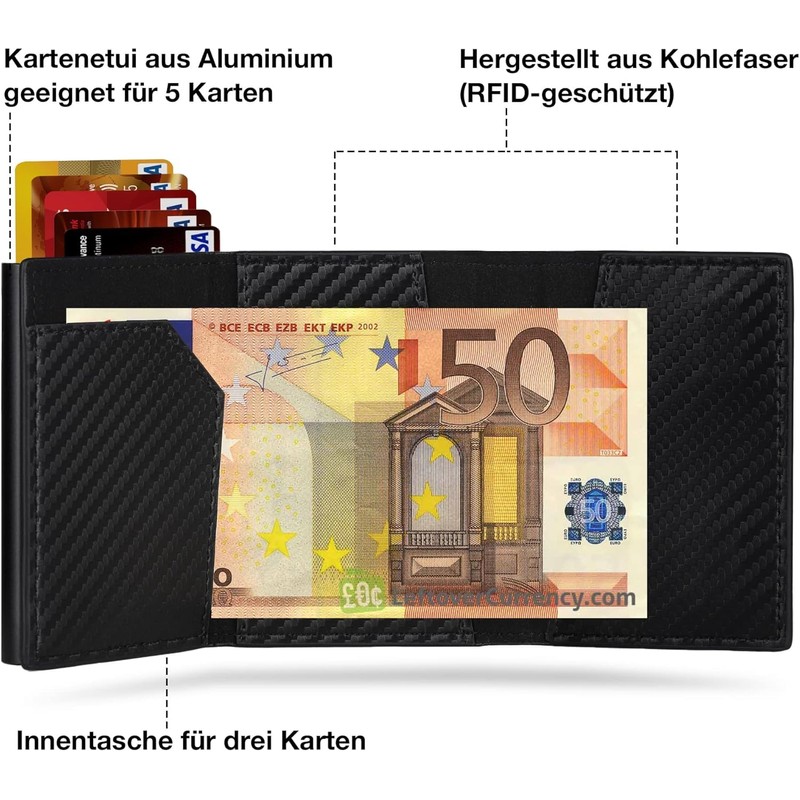 Excellent design and material: card case made of carbon fiber leather, exquisite and compact, large capacity, easy to carry, easy to put in the front or back pocket, so you can get rid of the heavy wallet.