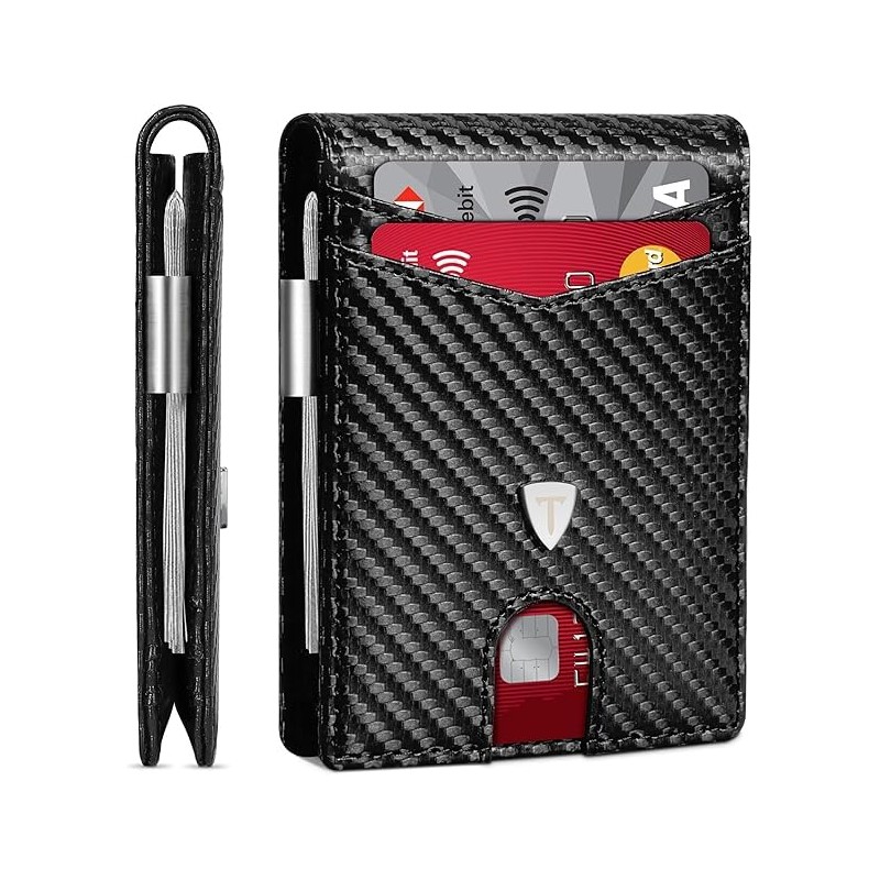 Tomylv Mens Wallets Slim RFID Blocking Carbon Fiber Leather Wallets