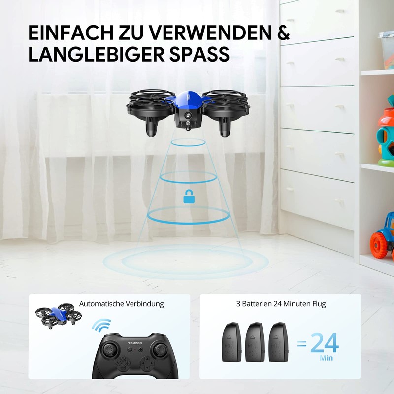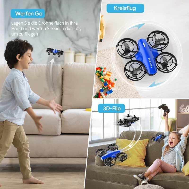 TOMZON Mini Drone for Children Beginners, Aeroplane Remote Controlled with Battle Mode, RC Quadcopter 24 Minutes Long Flight Time, 360° Propeller Protection, Toy Throwing Go/3D Flip/Circle Flight,