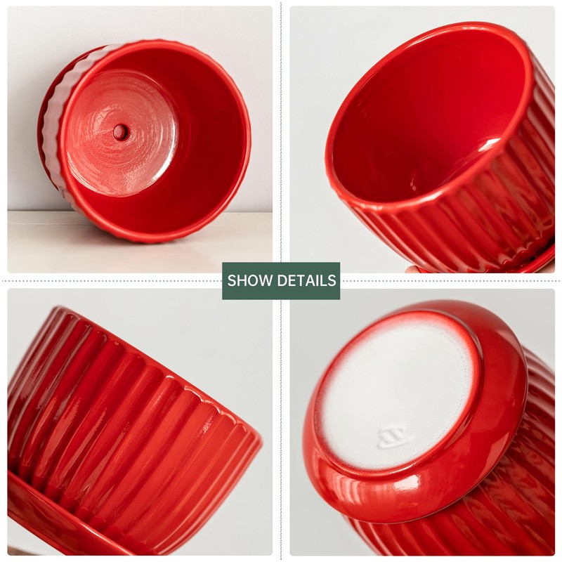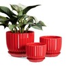 - ❀【VERSATILE 3-POT SET 】- Set of 3 red ceramic pots in sizes of 4", 5", and 6" for indoor plants, with drainage holes and trays for healthy root growth.