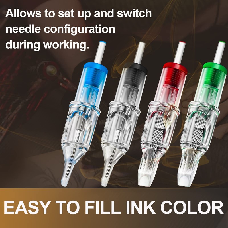 - 🎔 EASY TO USE - TONBAO needle is easy to fill ink color. Smooth operation without dead ends. Compatible with most standard needle grips and rotary gun machines. Allows to set up needles and switch needle configuration very quickly during working.