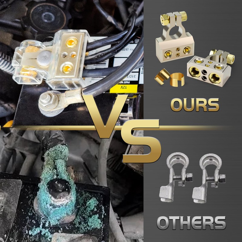 TONDA Battery Terminals, 0/4/8/10 Gauge Battery Terminal Connectors with Shims and Protective Covers, Car Cable Ends, 1 pair