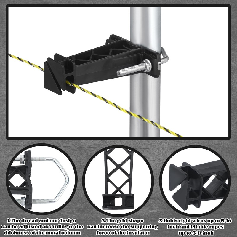 Tondiamo 24 Pcs Tube Post Insulator, Electric Fence T Post Insulators for Electric Fence Wire for Chain Link Square or Round Tubing (Black)