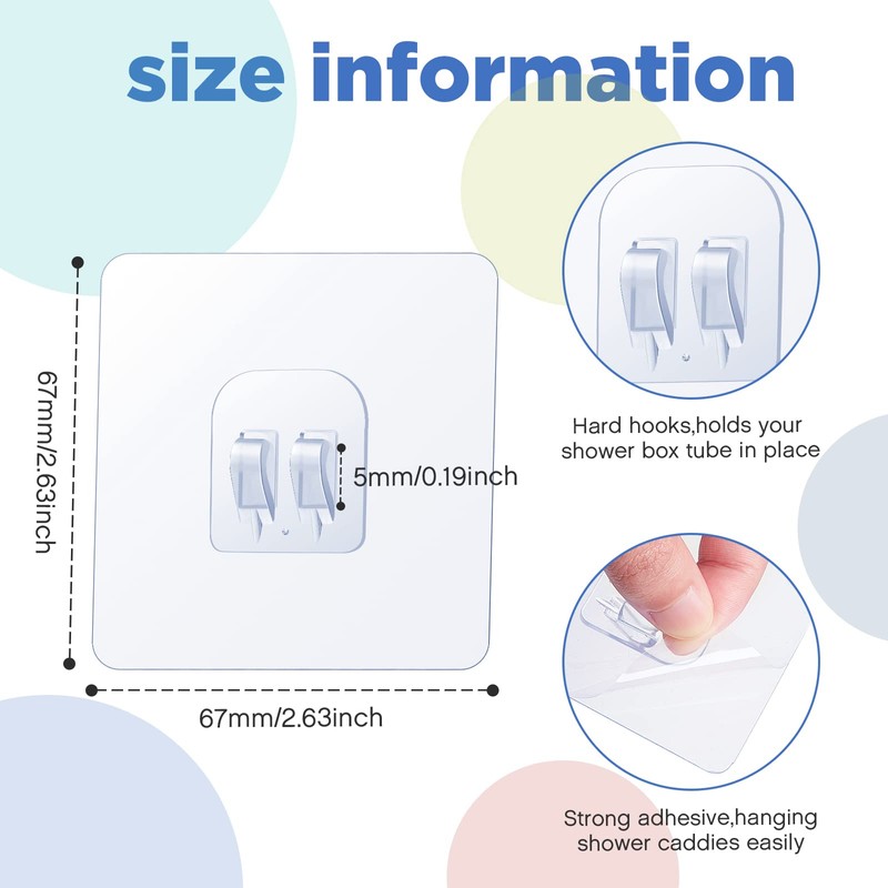 - Suitable sizes: the sizes of these adhesive sticker hooks for shower caddy are 67 mm/ 2.36 inches x 67 mm/ 2.36 inches, the sizes are suitable that will not take too much space, and can be adjusted with the size of the bath boxes, better for different kinds of bath boxes