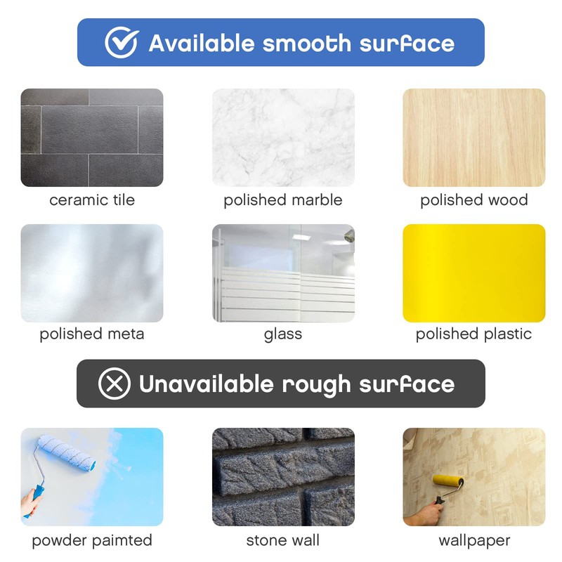 Wipe the surface with alcohol before applying. Please soak in warm water for a few minutes and clean the adhesive sticker hook for better results, rough surfaces are not recommended.