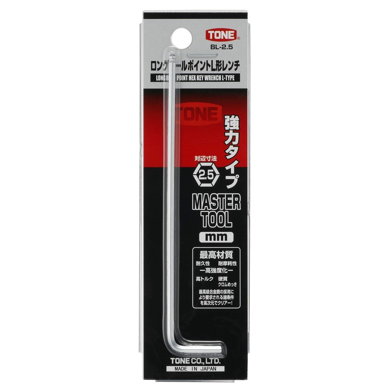 TONE BL-2.5 Long Ball Point L-Shaped Wrench Double Side Width 0.1 inch (2.5 mm)
