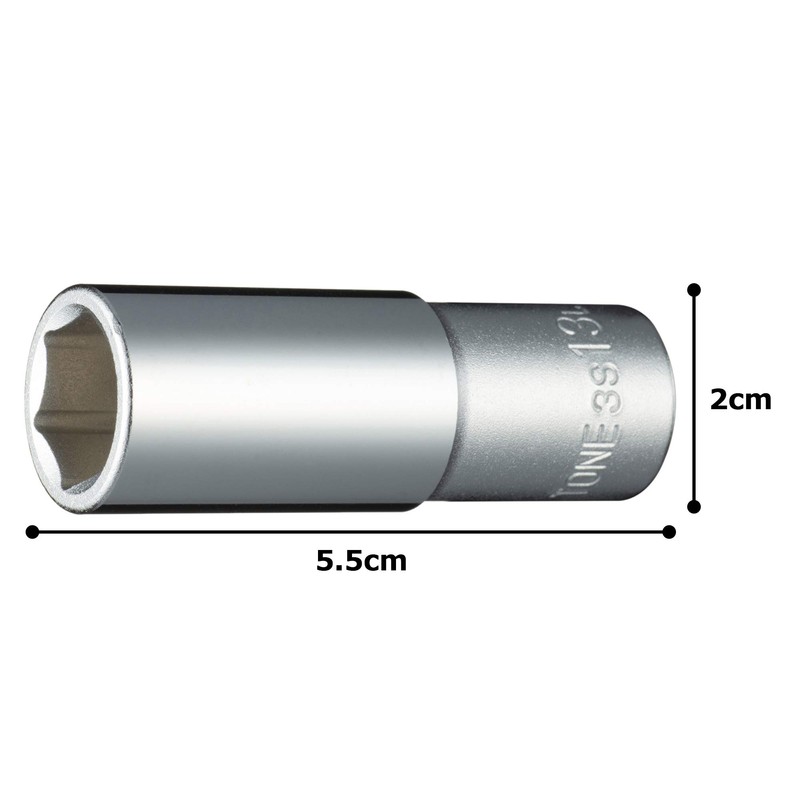 Tone Deep Socket (6 Angle) 3S-13L Drive Angle 0.3 inch (9.5 mm) (3/8 mm), Double Side Width 0.5 inches (13 mm)