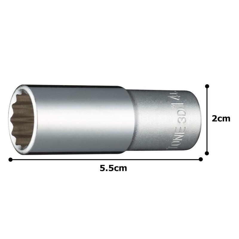 TONE HP3D-14L Deep Socket (12 Square) Drive Angle 0.3 inch (9.5 mm) (3/8 mm), Double Side Width 0.6 inches (14 mm)
