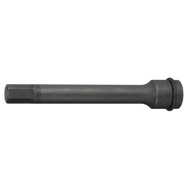 Socket with hexagonal hole for impacts. Long type. Package Size: Length: 7.7 inches (195 mm), Width: 1.5 inches (38 mm), Height: 1.0 inches (25 mm); Package Weight: 9.5 oz (260 g); Dimensions: Double Sided Width: 0.5 inches (14 mm), Hex Shaft Length: 0.8 inches (20.0 mm), Total Length: 5.9 inches (150 mm). Weight: 9.2 g).