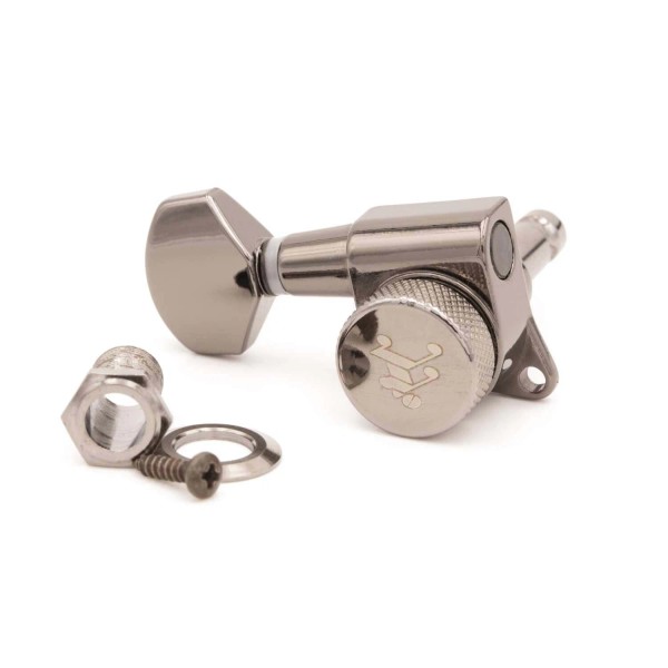 Genuine Tone Ninja 19:1 Locking Tuners, 6 Inline Baritone staggered set, Left Handed Black Nickel