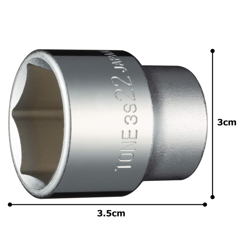 TONE Socket (6 Angle) 3S-22 Drive Angle 0.3 inch (9.5 mm) (3/8 mm), Double Side Width 0.9 inches (22 mm)