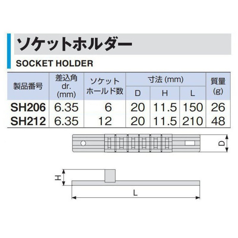 TONE Socket Holder HPSH206 1/4 inch (6.35 mm) Insertion Angle 6 Panels