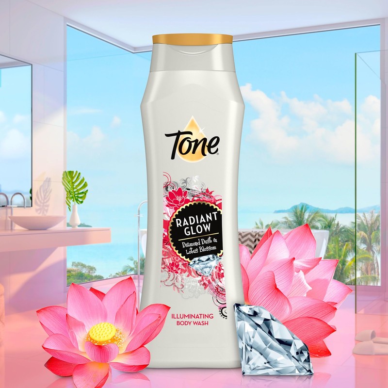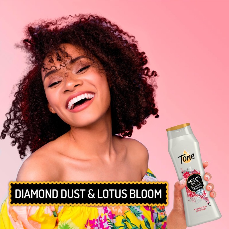 You are as radiant as a diamond and that's why your skin deserves only the very best. Let Tone Radiant Glow Body Wash pamper your skin with glowing diamond dust & the alluring fragrance of lotus blossom. The rich formula with Vitamin E will leave your skin nourished and moisturized. Reveal your own natural glow C so you can shine like a diamond every day!