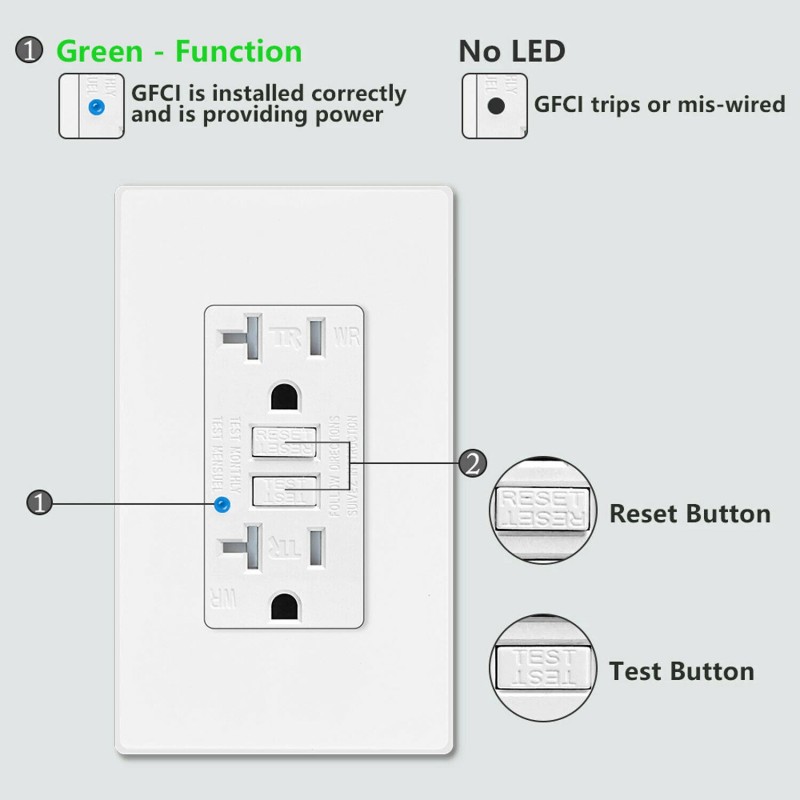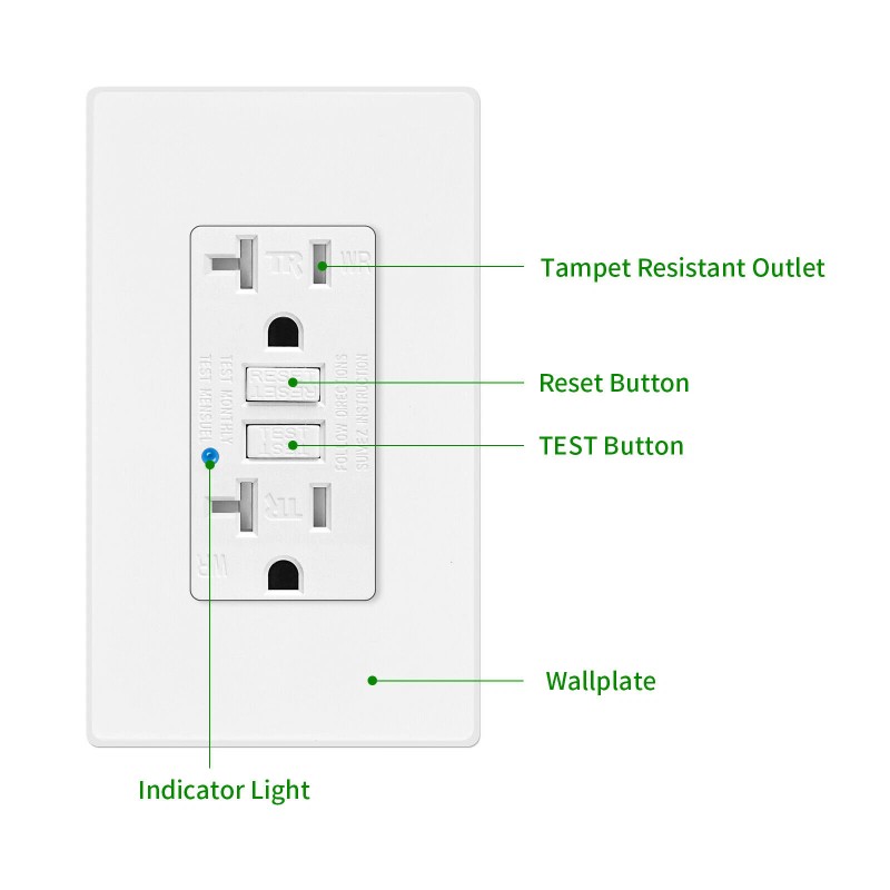 - Features: GFCI Safety Circuit, Child Safe, Including Cover, Indicator Light