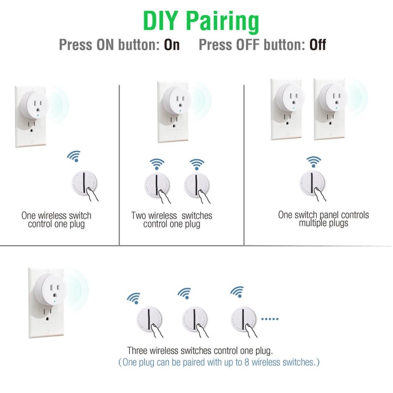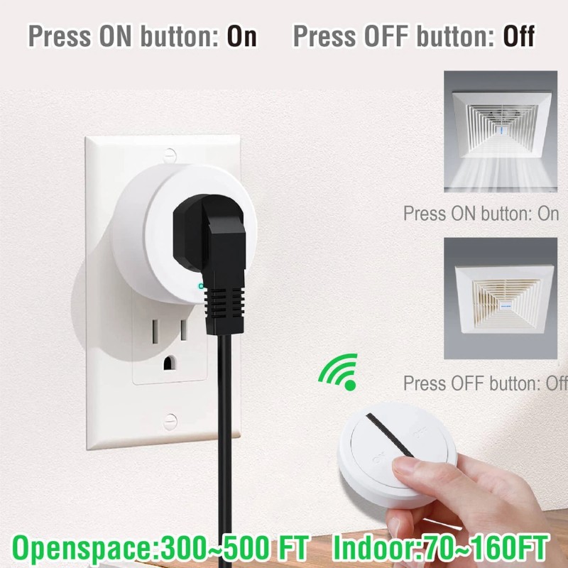 tonerprof Wireless Remote Control Outlet Plug Expandable Light Switch 500 FT White 4 Packs