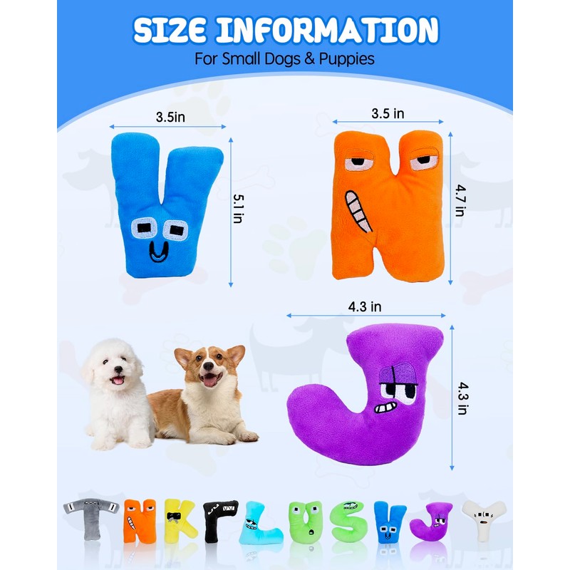 - 10 PCS Set for Small Breeds: Our charming set of 10 little colorful letter toys, each adorned with a cute smiley face, is tailor-made for the tiny mouths of puppies and small dog breeds. Whether it's a feisty Yorkie, a lovable Pug, a pint-sized Chihuahua, a regal Shih Tzu, a sprightly Mini Schnauzer, or a dapper Mini Dachshund, these toys are the perfect fit. They make an ideal gift for any occasion, be it Christmas, Easter, or your dog's special birthday