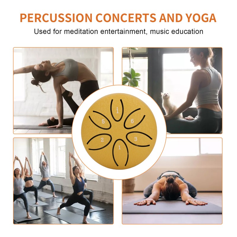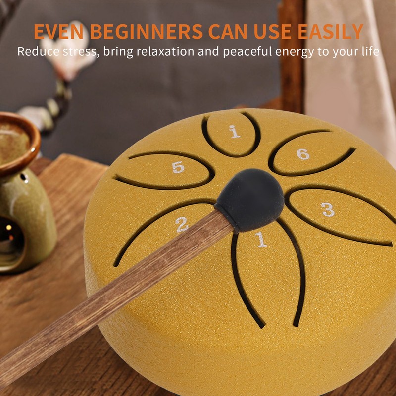 1、PREMIUM SOUND QUALITY: It produces a clear, filled tone that can give the listener a highly immersive musical experience. 2、CONVENIENT AND PORTABLE: Designed in a mini size, it is easy to carry around and play music wherever you go. Ideal for traveling, outdoor performances or daily practice. 3、MULTIPLE TONES: 6 different tones are provided. Each tone can be paired to create a unique musical melody, allowing the player to utilize his or her creativity to the fullest. 4、MATCHING TOOLS: Tongue drum comes with a drumstick, which can make it easier for the player to start playing and facilitate the player to explore the fun of music. 5、MULTIFUNCTIONAL: The tongue drum is suitable for a wide range of musical styles, including ethnic instrumental, meditative and healing music.
