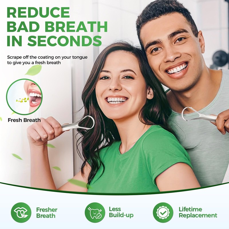 - Premium Stainless Steel - Crafted from 100% high-grade stainless steel, our tongue scrapers are durable, rust-resistant, and built to last. Unlike plastic alternatives, they won’t deform or break, ensuring a safe and reliable oral hygiene tool with smooth, burr-free edges for comfortable use.