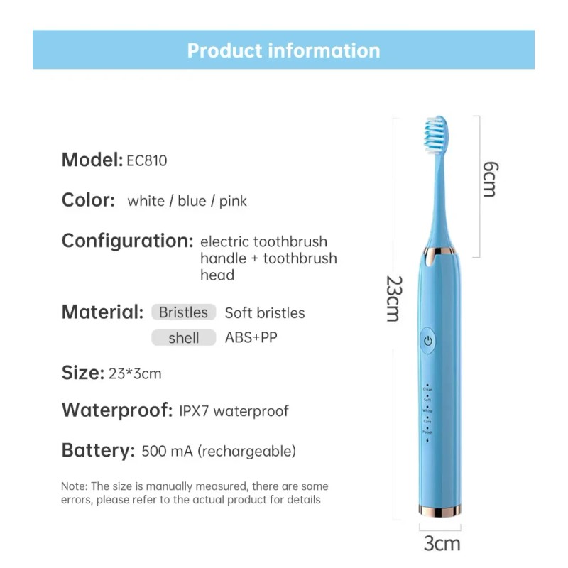 • USB Charge :Charge your toothbrush easily with a USB cable, no need for batteries