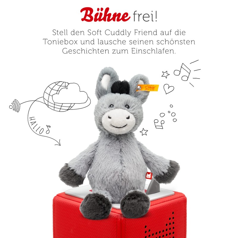 - Box contents & details - Steiff Tonie donkey figure - soft cuddly friends with audio play, great good night stories for children aged 3 and over.