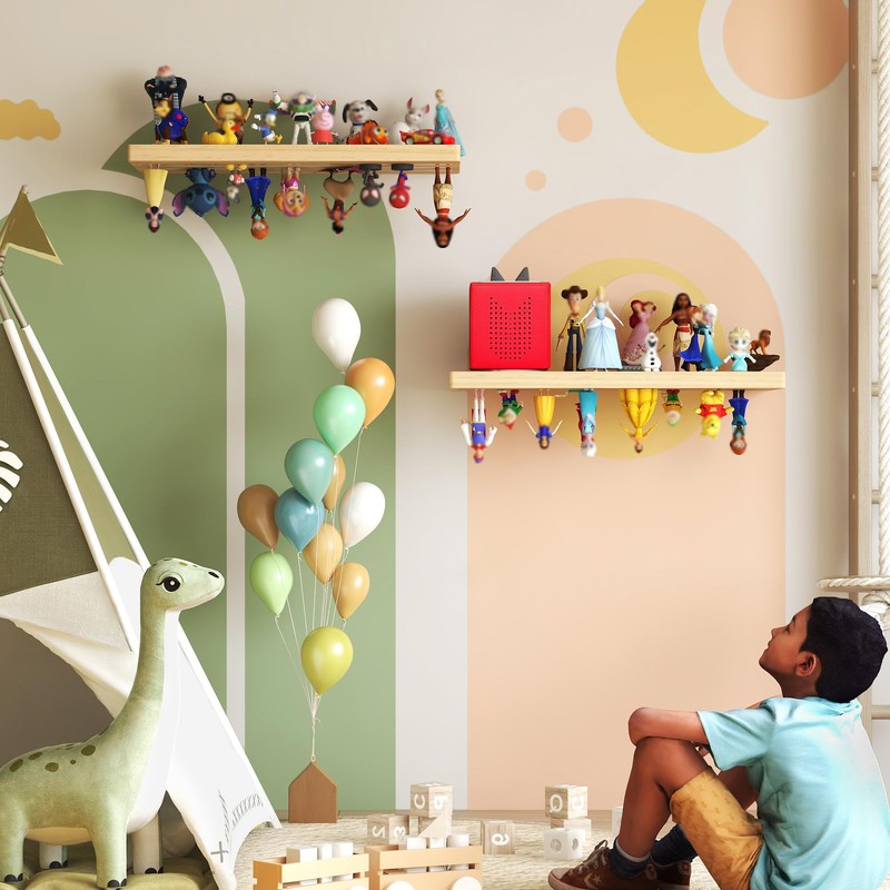 - 【The Perfect Gift】This practical and charming shelf is an ideal gift for Tonies fans. Kids can organize their favorite Tonie characters and Toniebox neatly, while the built-in charging cable slot ensures a tidy and functional setup. A thoughtful present for parents and children alike, it combines toy storage and nursery wall decor into one stylish piece