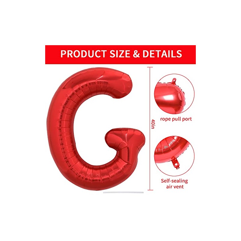 TONIFUL 40 Inch Large Bright Red Letter Balloons A-Z, Giant Jumbo Helium Foil Mylar Big Letter G Balloons for Birthday Party Anniversary Wedding Decorations