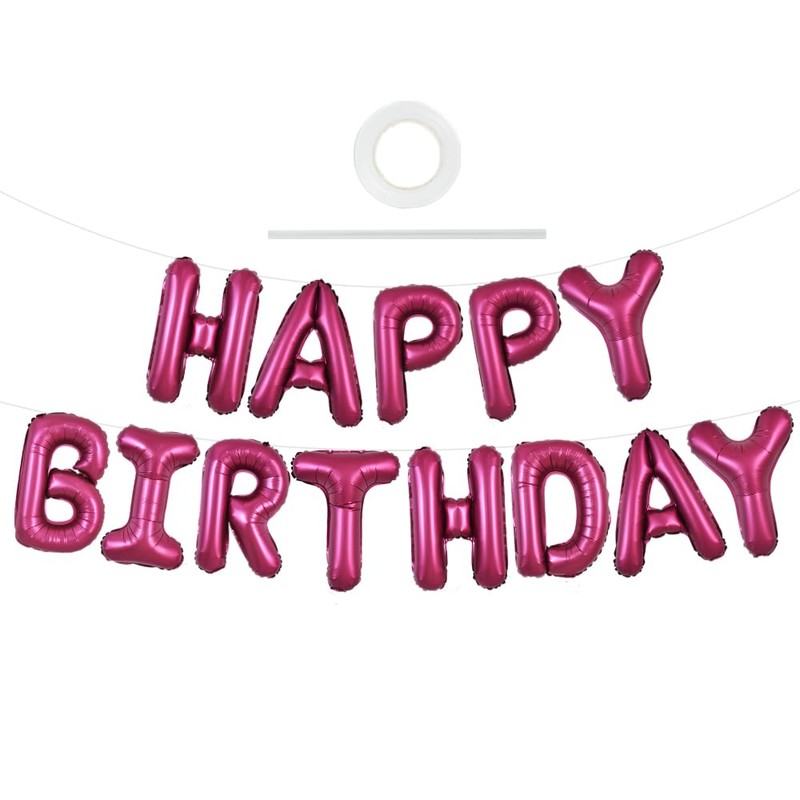 TONIFUL Happy Birthday Balloons Banner with Ribbon Straw,16 Inch Mylar Letters Birthday Sign Banner Balloon Bunting Reusable for Kids & Adults Construction Birthday Party Supplies(Wine Red)