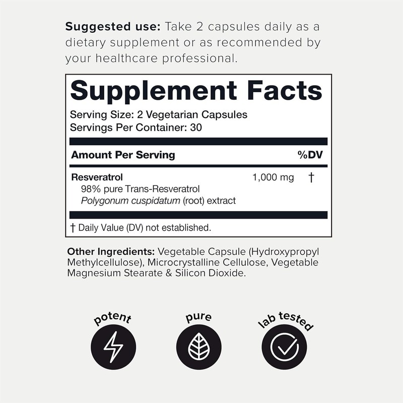 - Setting a New Standard for Purity - To ensure that you are getting the highest-quality resveratrol supplement, each batch is tested for quality and purity both during and after manufacturing.