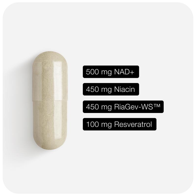 • Clinically Studied Ingredients – Includes RiaGev-WS, a patented compound shown in clinical trials to boost NAD+ levels effectively.