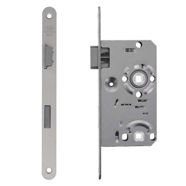 - Door lock for bathroom doors DIN left with latch and latch made of plastic for quiet closing