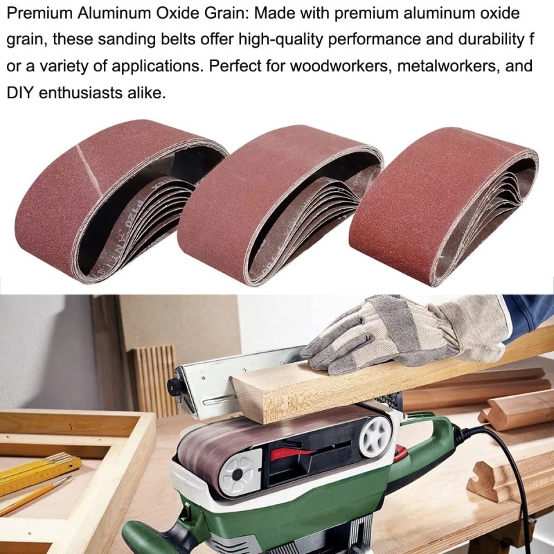 This is a high quality sanding belt is designed specifically toprovide outstanding life and durability for many wood beltsanding applications. It is made with a special open coatA/O grain.and a strong X weight poly cotton cloth backing.Belts are anti-static, washable plus it has anadditive in theresin to resist loading.Perfect used for wood / aluminum / non-ferrous metal / glass / plastic / stone ect.Package included:5 x 40 Grits5 x 80 Grits5 x 120 GritsSize:3 inch x 21 inch