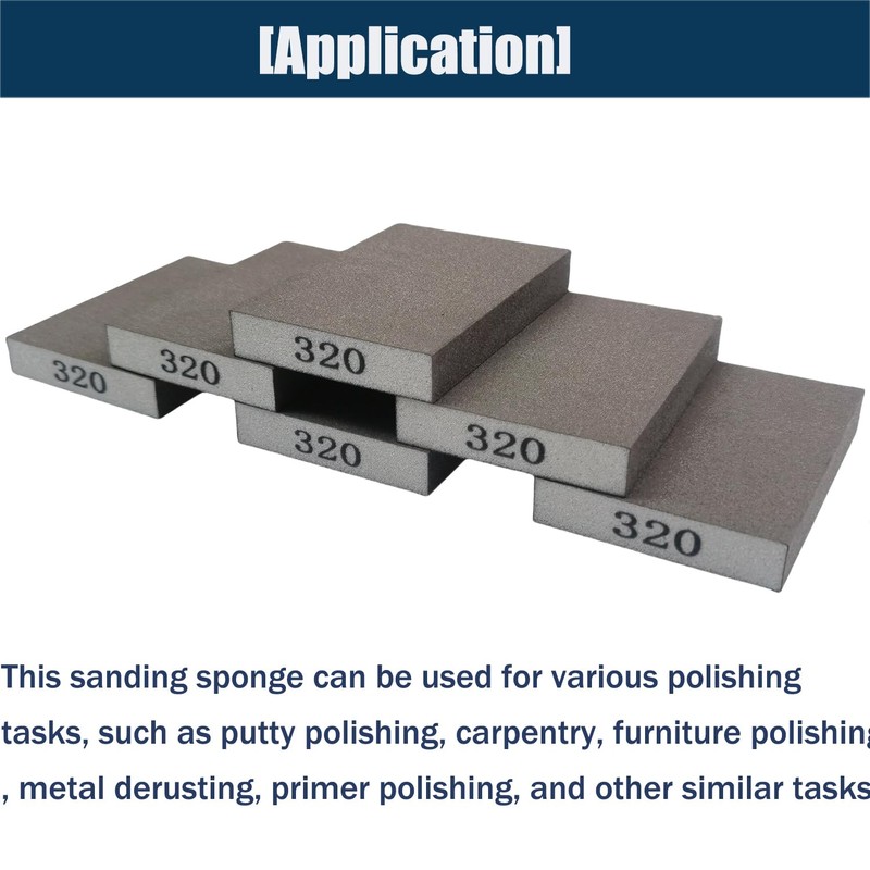- [Application]: This sanding sponge can be used for various polishing tasks, such as putty polishing, carpentry, furniture polishing, metal derusting, primer polishing, and other similar tasks.