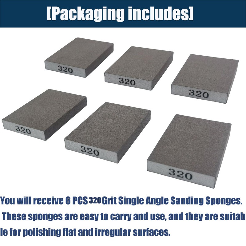 - [Packaging includes]: You will receive 6 PCS 320 Grit Sanding Sponges. These sponges are easy to carry and use, and they are suitable for polishing flat and irregular surfaces.