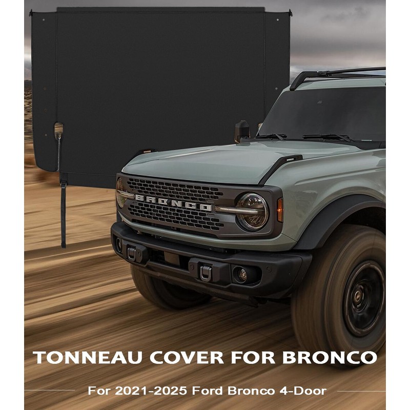 - [ ADVANTAGE ] -- Tonneau Cover provide coverage to your cargo area when your top is off. This will be a great addition to your 2021-2025 4-door Ford Bronco. Full day coverage protection make sure you belongings in the cargo stay out of dust / sun and turns away any curious eyes when the top is off.
