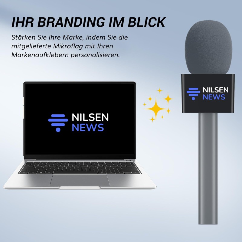 • audience during your interviews. Removable and customizable micro flag: easy to take off and securely attach so that everything stays in place. You can personalise them with custom logo stickers, such as your transmitter's emblem to give your recordings a professional look.