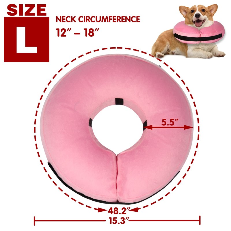 Tonqixope Inflatable Dog Cone Collar-Soft Protective Cone for Dogs After Surgery,Dog Donut Collar for Large Medium Small Dogs and Cats (Pink,Large)