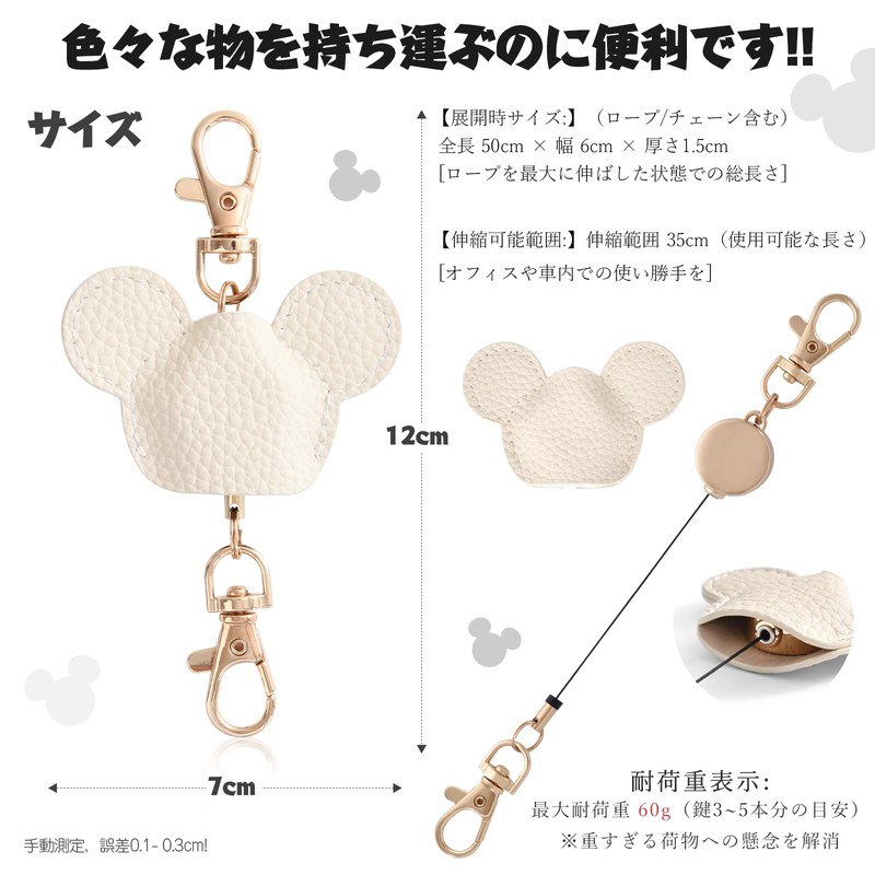 Tonriga Women's Reel Keychain, Key Reel, Strap, Durable, Stretchable, 12.6 inches (32 cm), white (off-white)