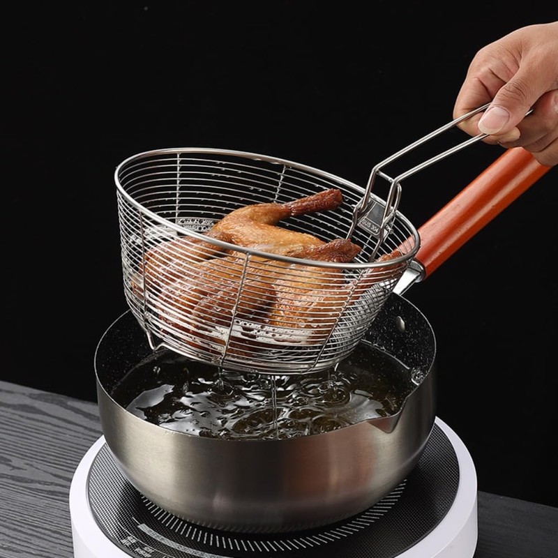 - ✅【Aplication】Fry basket for chicken wings, Oil drainer basket for kitchen, Frying basket for chips, Commercial fry basket, Deep fryer basket with handle, Fry basket for air fryer, Fry Basket for Chicken Wings, Stainless Steel Frying Basket with Handle, Stainless Steel Fry Basket for Home Use