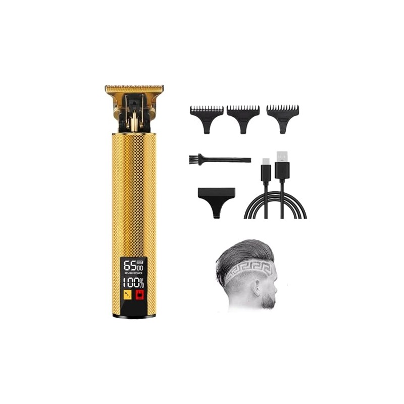 Tonsor Pro Shaver, T-Shaped Electric Beard Trimmer, Waterproof and Cordless, Harmless to The Skin, Men's Hairdressing and Beauty Set, for use on The face and Head, Bald Hair Clipper (Gold)