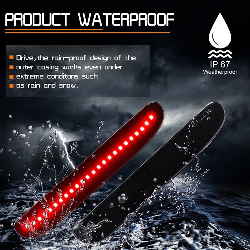 - ♥ Sealed and Waterproof: plastic housing processed with ultrasonic treatment,anti-scratch, no faded with long-time exposure and can adapt to all kind of extreme weather,no moisture inside after a heavy rain or car wash.Waterproof IP65, shockproof, dustproof, 50000+ hours life-span.
