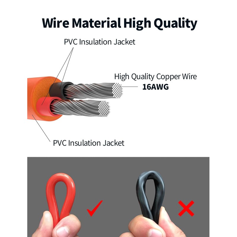 • [Upgraded Appearance with Integrated SAE Cable] 25-foot long copper wire, SPT-2 16AWG, 2-pin with red for positive and black for negative, integrated into a durable orange line for improved visibility and organization.