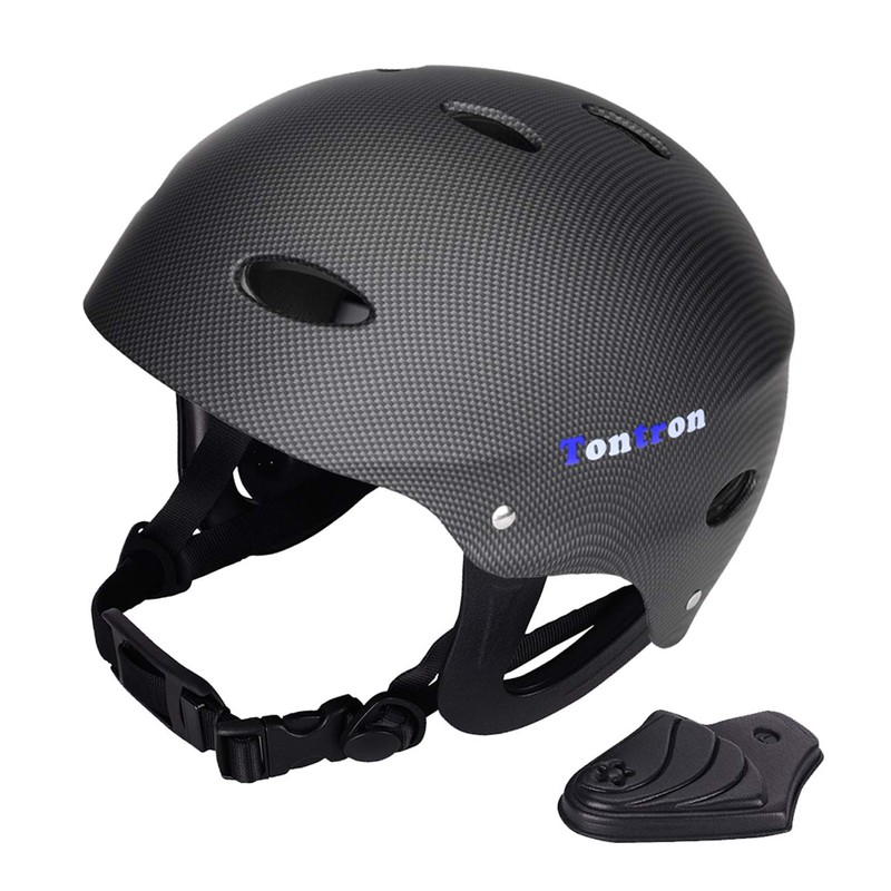 Tontron Adult Whitewater Kayaking Canoeing Helmet(Matte Black Fiber Pattern,Large)