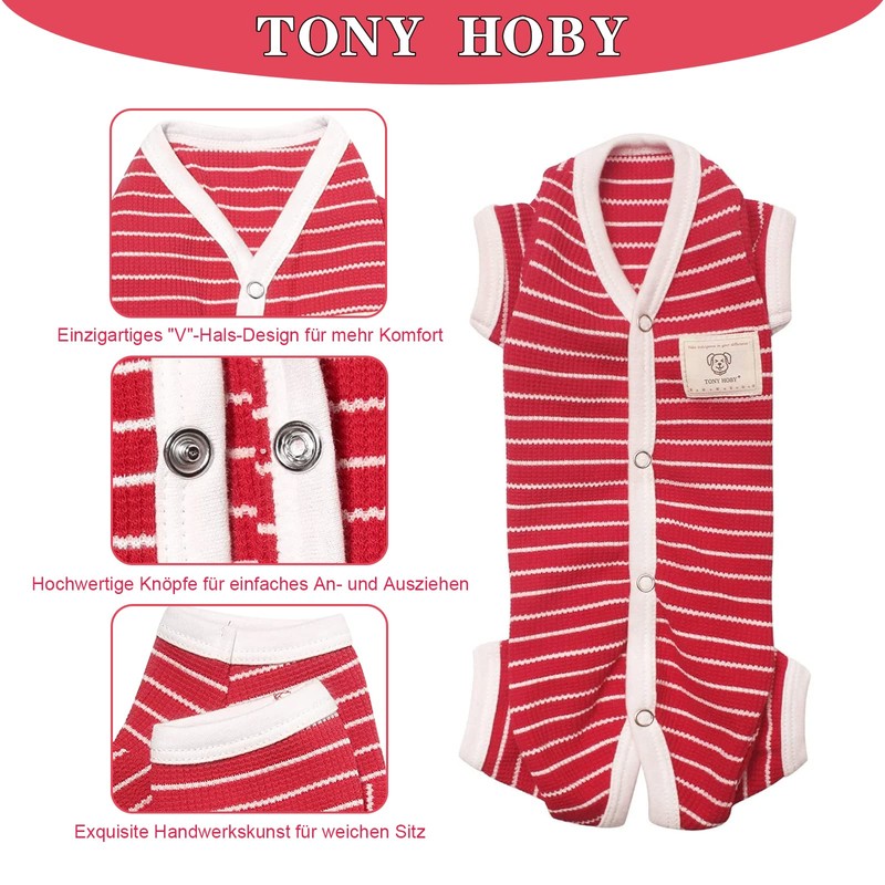 TONY HOBY dog pyjamas, pajamas for dogs with 4 legs, dog jumpsuit with waffle stripes, dog pyjamas for medium and small dogs (red-boy, L)