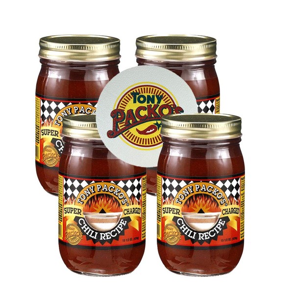 - Includes 4 Jars of Tony Packo's Super Charged Chili Base; 15.5 Ounces Each and 1 Free Tony Packo Jar Opener
