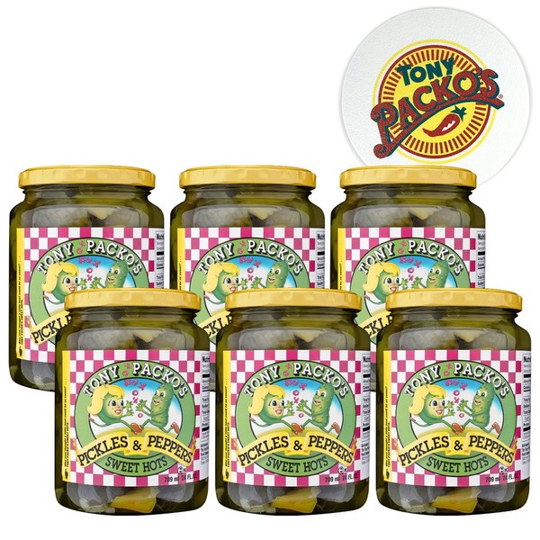 - Includes 6 glass jars of sliced chunky pickles with a perfect blend of sweet and hot; 24 ounces jars and 1 Tony Packos Jar Opener