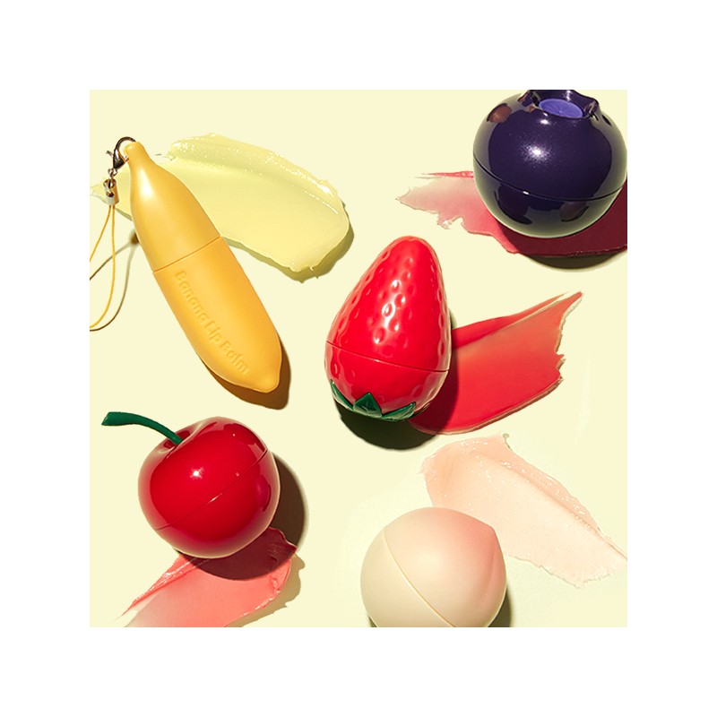[Banana] It features a fresh sweet banana fragrance and easy-to-carry banana tube packaging. The light-yellow balm delivers nourishing hydration and a high-shine coat. With a syrup-like melting texture, it quickly delivers nutrient-rich hydration for healthy, youthful-looking lips. [Blueberry] It features a delightful blueberry fragrance and super-cute pot packaging. The lightly tinted balm melts on lips for a soft shiny coral color. The soft melting formula moisturizes lips and makes them appear juicy & shiny. [Cherry] It features a soft cherry fragrance and super-cute pot packaging. The lightly tinted formula instantly enhances lips with a soft cherry-red color. The soft melting balm leaves lips moisturized, looking juicy, youthful with a high shine. [Peach] It features a honey peach fragrance and super-cute pot packaging. With a melting balm texture, it nourishes, conditions, and naturally enhances dry, rough lips. Lips are left moisturized, looking juicy and youthful just like a bite of a fresh peach.