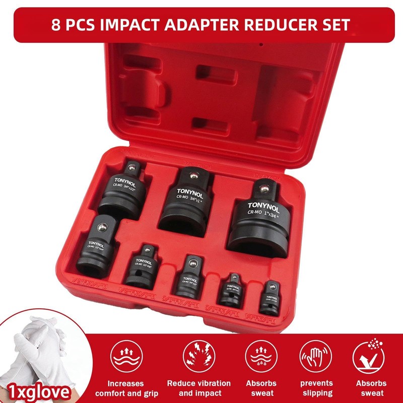 TONYNOL 8 Piece Impact Socket Adapter and Reducer Set,1/4" 3/8" 1/2" 3/4" 1"Drive Socket Adapter Set,Cr-Mo Steel,With a Storage Case.