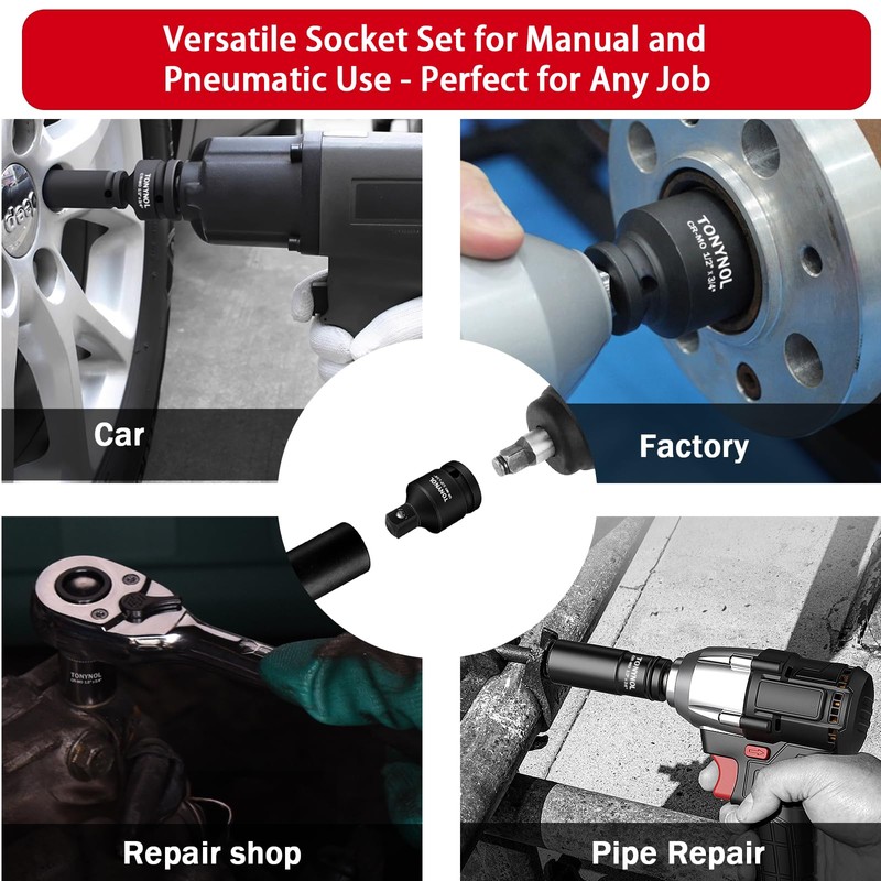 - 【DURABLE & EASILY IDENTIFIABLE】:TONYNOL socket adapter set stands out with its black manganese phosphate coating, providing excellent corrosion and rust resistance for long-lasting use. Laser markings make it easy to identify and quickly find the right adapter.