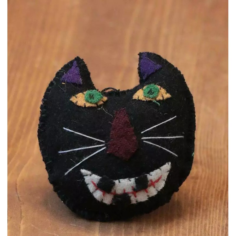 Tonys Halloween Ornament Black Cat Head Felted Wool Applique 3 inch Spooky Tree Decor