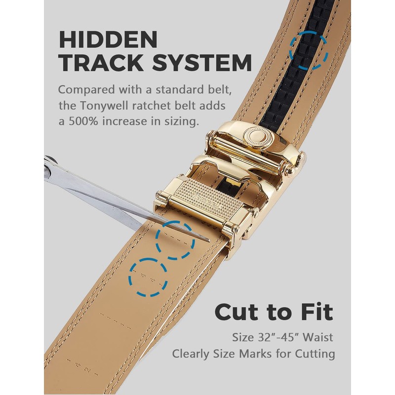Tonywell Belt Mens Leather Ratchet Belt with Automatic 40mm Buckle